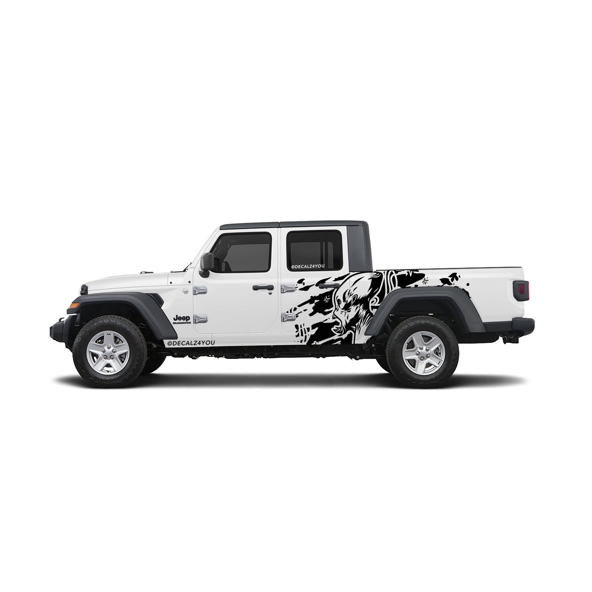 Elevate your Gladiator look with striking extra-large side graphics. This kit includes eye-catching decals for both the Driver and Passenger sides. (BOTH Sides Included) Elevate your vehicle's style and stand out on the road! It comes complete with application tape and easy-to-follow instructions, ensuring a flawless and hassle-free installation. Transform your ride with confidence!