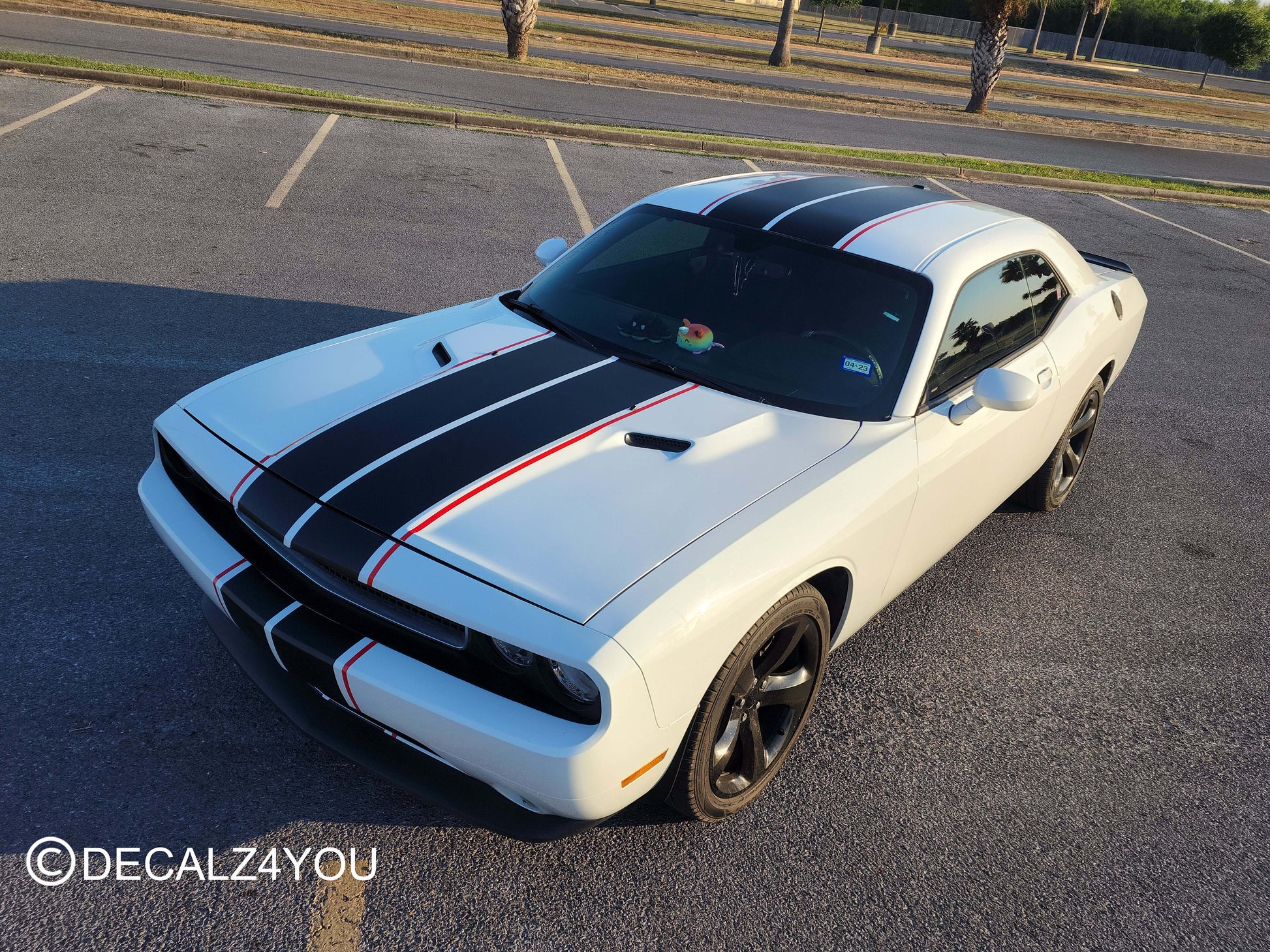Transform your Challenger 2008-2014 with dual Racing Stripes!. Elevate your vehicle's style and stand out on the road! Our precision-cut, pre-sized decal is designed specifically for your vehicle, eliminating the need for trimming. It comes complete with application tape and easy-to-follow instructions, ensuring a flawless and hassle-free installation. Transform your ride with confidence!