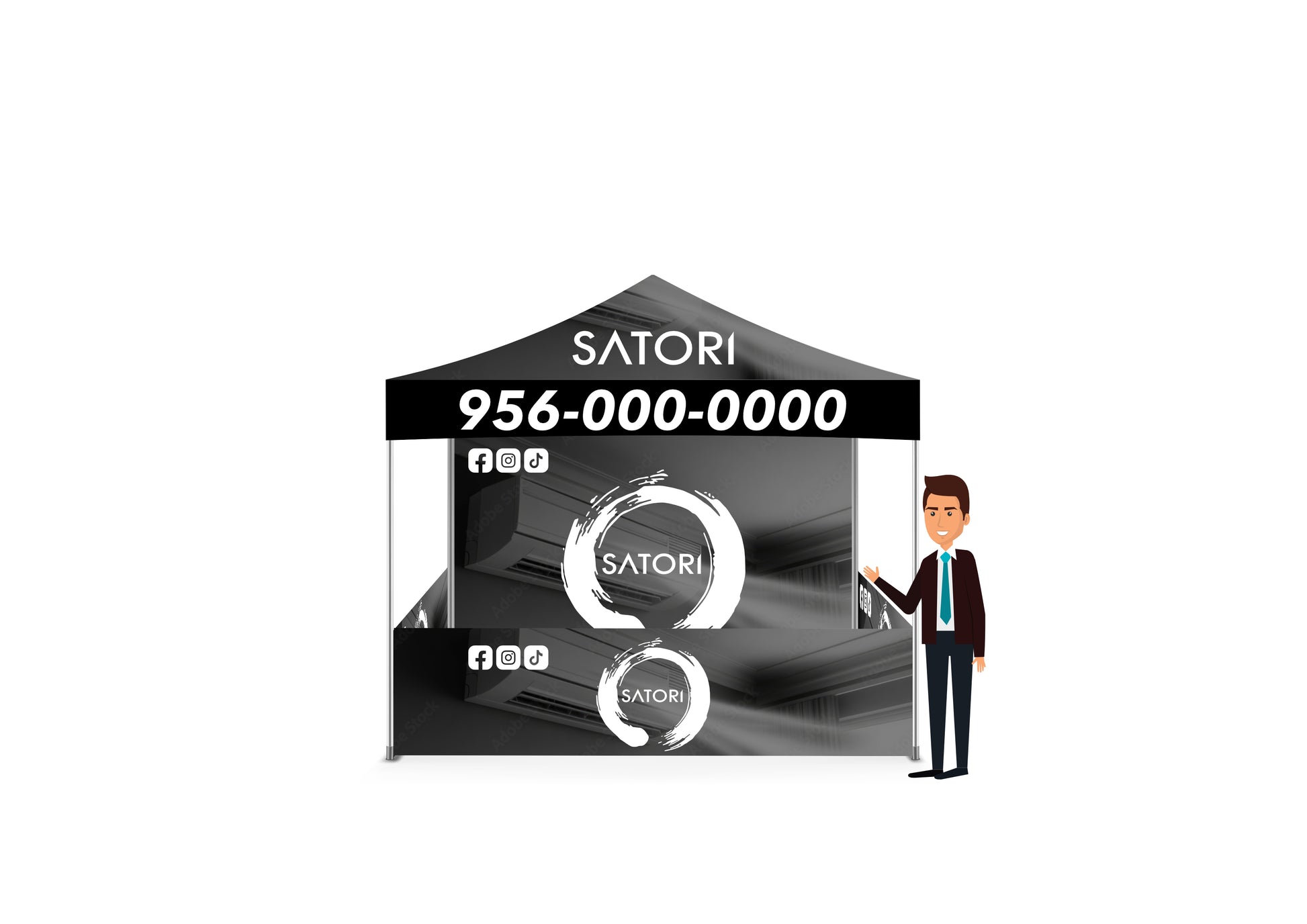 Custom Printed Tent With A Backdrop and Three Half Walls FREE DESIGN - 10x10 Custom Canopy For Marketing, Trade Shows, Festivals, Farmers Market and Any Event.