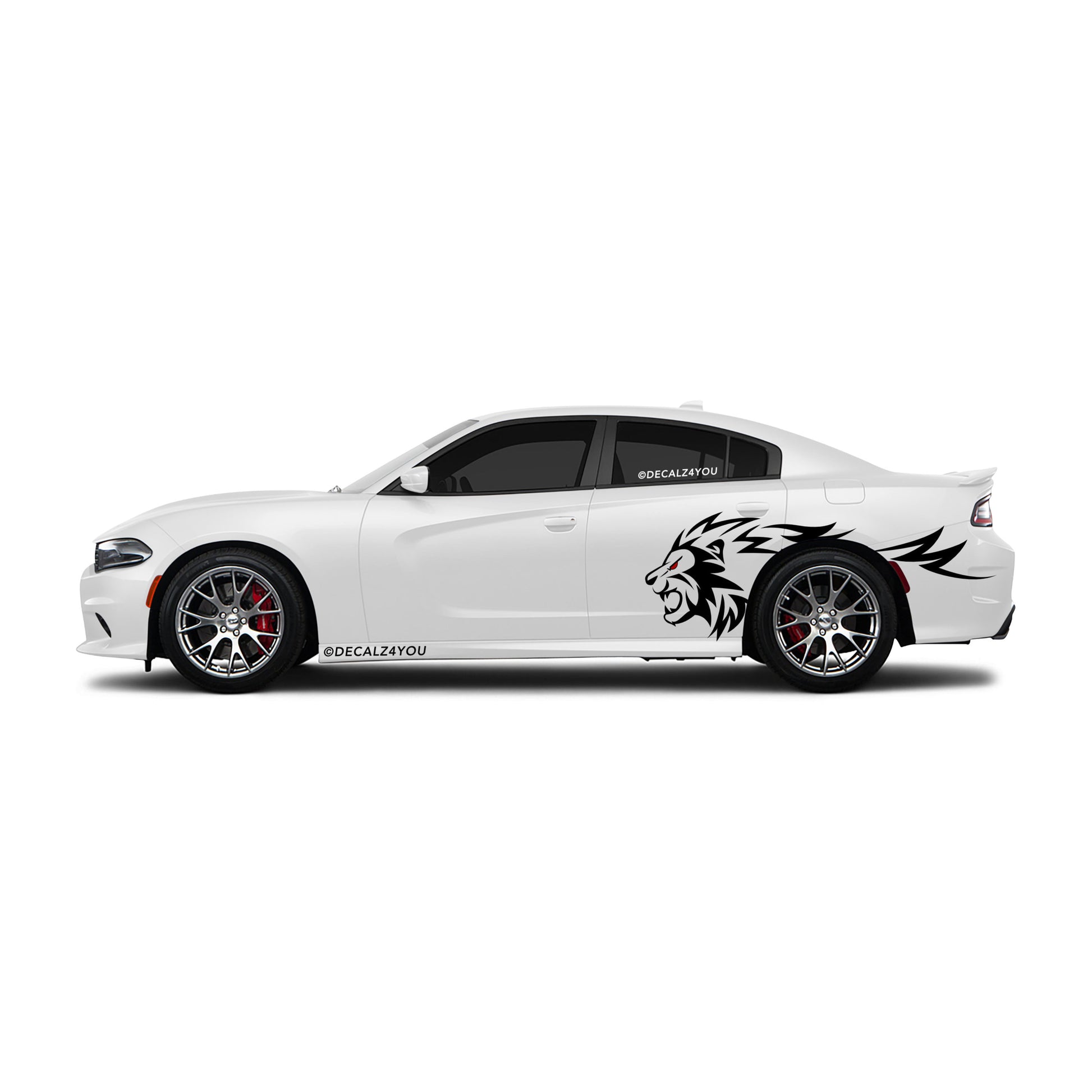 Elevate your Charger look with striking extra-large side graphics. This kit includes eye-catching decals for both the Driver and Passenger sides. (BOTH Sides Included) Elevate your vehicle's style and stand out on the road! It comes complete with application tape and easy-to-follow instructions, ensuring a flawless and hassle-free installation. Transform your ride with confidence!