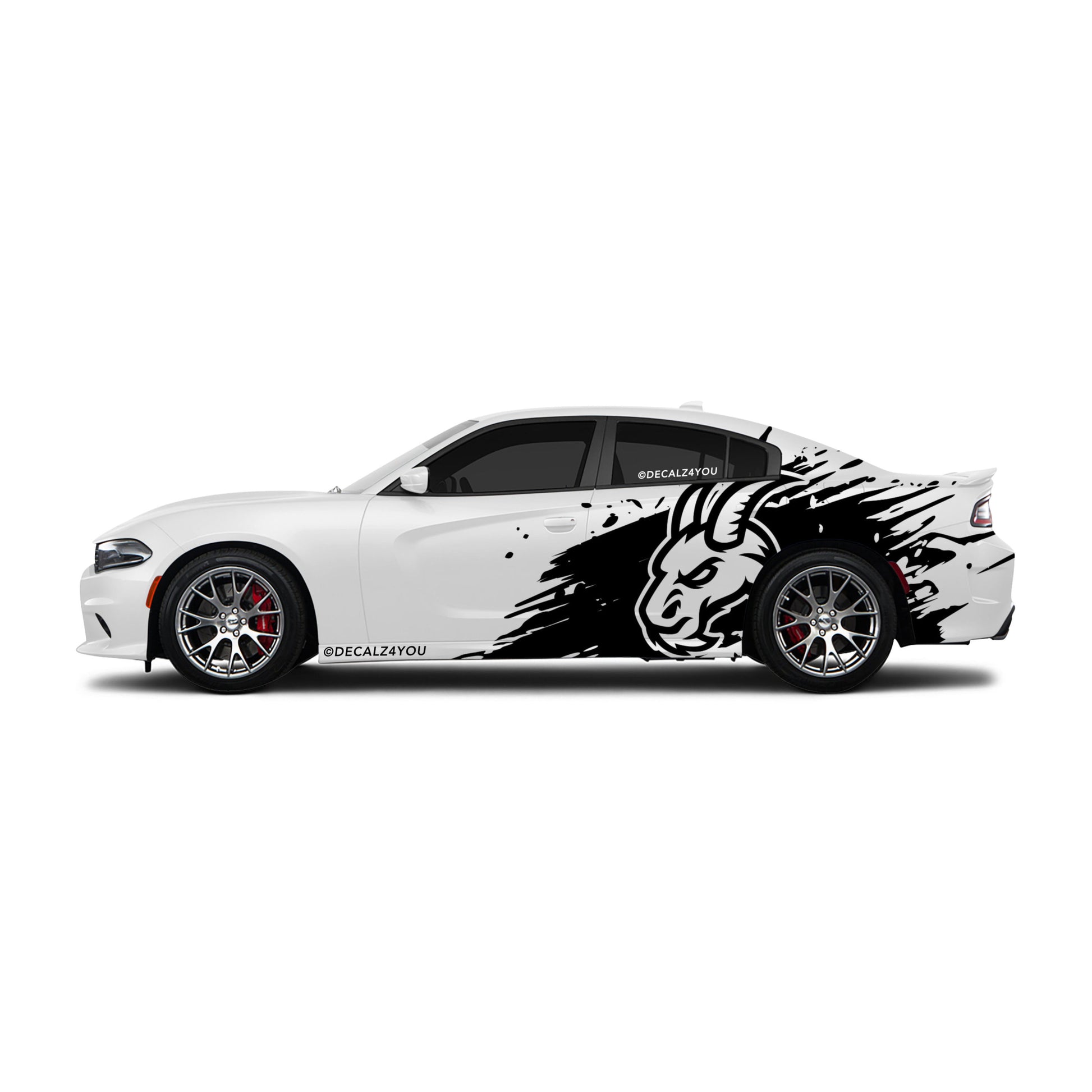 Elevate your Charger look with striking extra-large side graphics. This kit includes eye-catching decals for both the Driver and Passenger sides. (BOTH Sides Included) Elevate your vehicle's style and stand out on the road! It comes complete with application tape and easy-to-follow instructions, ensuring a flawless and hassle-free installation. Transform your ride with confidence!