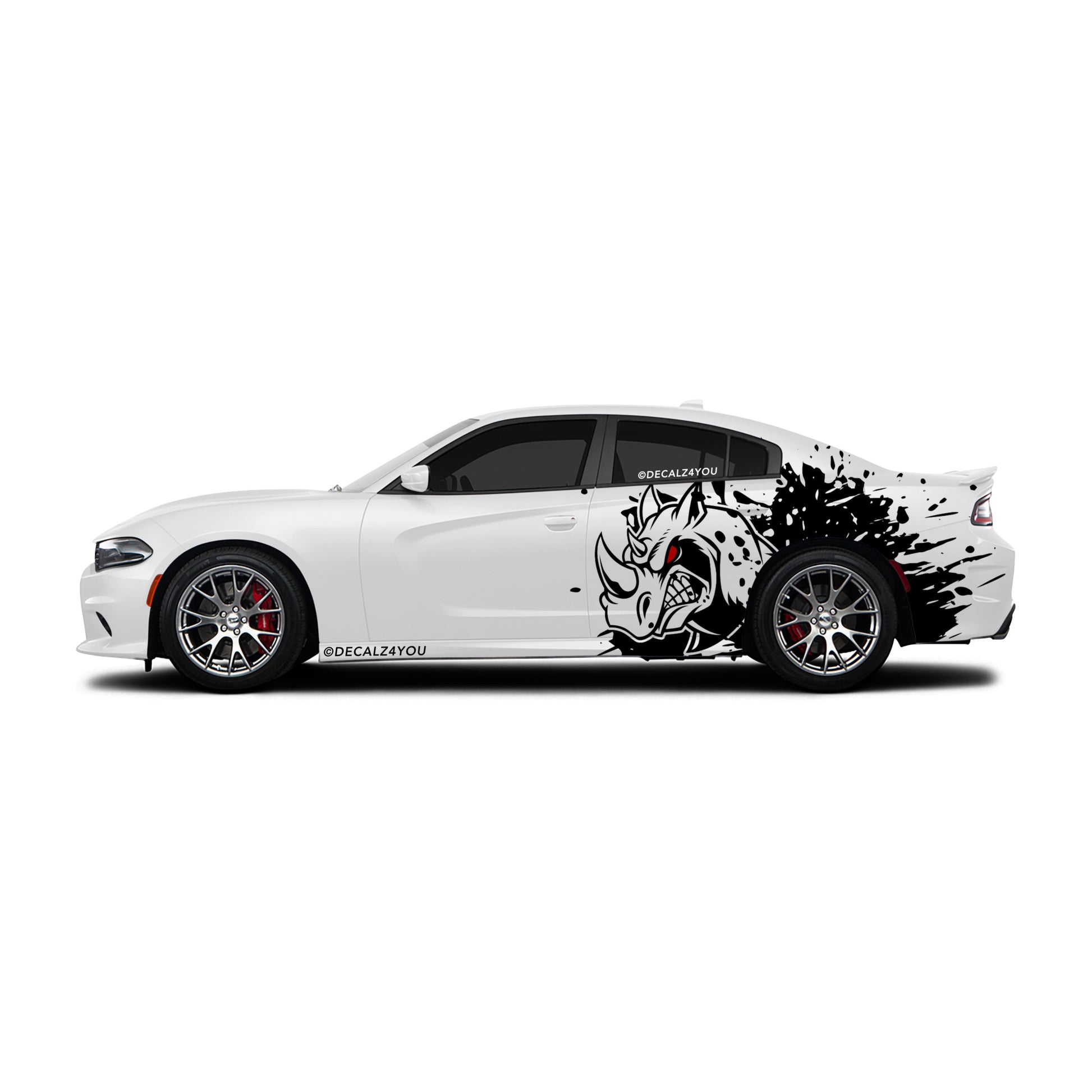 Elevate your Charger look with striking extra-large side graphics. This kit includes eye-catching decals for both the Driver and Passenger sides. (BOTH Sides Included) Elevate your vehicle's style and stand out on the road! It comes complete with application tape and easy-to-follow instructions, ensuring a flawless and hassle-free installation. Transform your ride with confidence!