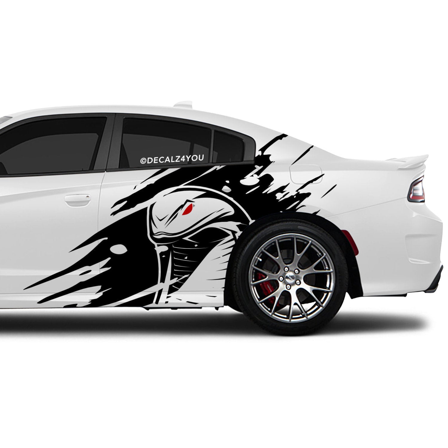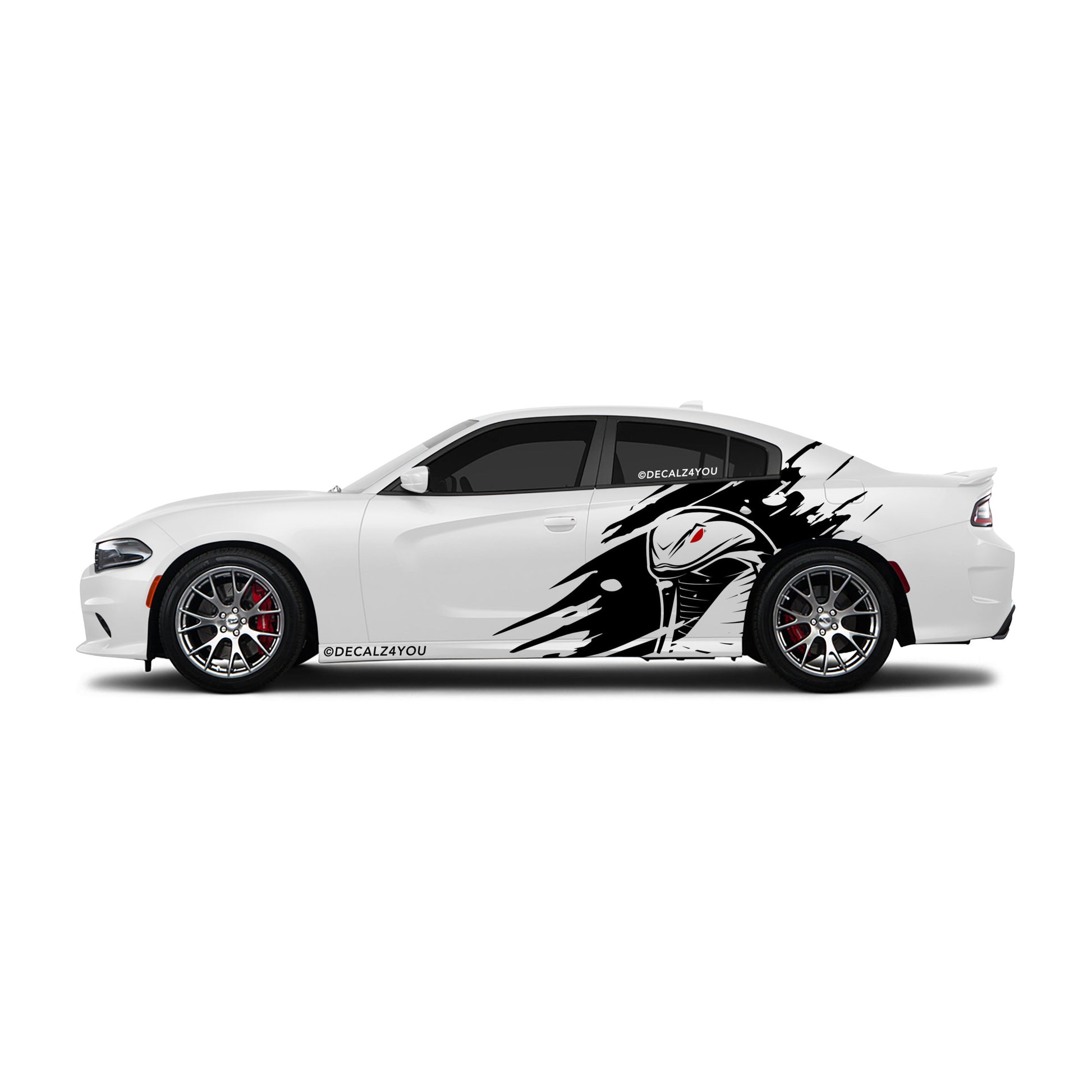 Elevate your Charger look with striking extra-large side graphics. This kit includes eye-catching decals for both the Driver and Passenger sides. (BOTH Sides Included) Elevate your vehicle's style and stand out on the road! It comes complete with application tape and easy-to-follow instructions, ensuring a flawless and hassle-free installation. Transform your ride with confidence!